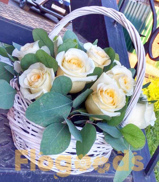 Милая, нежная корзина из кремовых роз и зелени заставит улыбнуться любую женщину. Это один из лучших подарков, который будет долго радовать получателя.